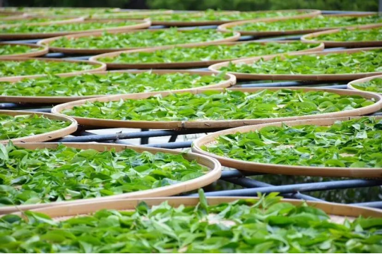 單叢茶的加工過程中,焙火方面雖不如武夷巖茶一樣對火功要求高,但也極為復雜,一般包括曬青、做青、殺青、揉捻、烘焙等工序。